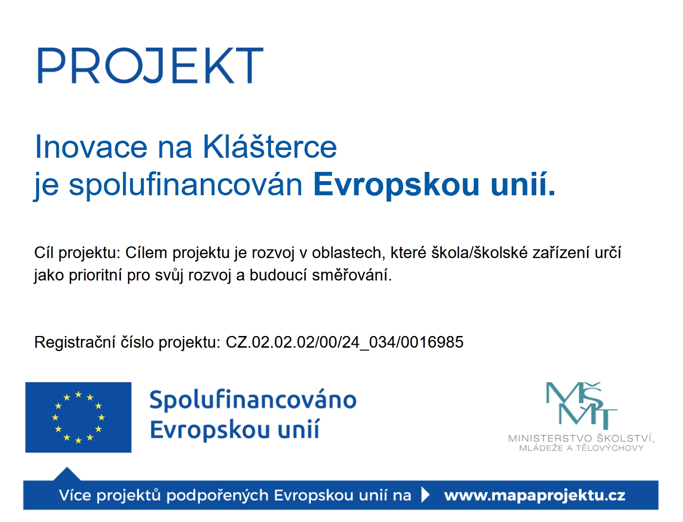 Inovace na Klášterce - Projekt EU